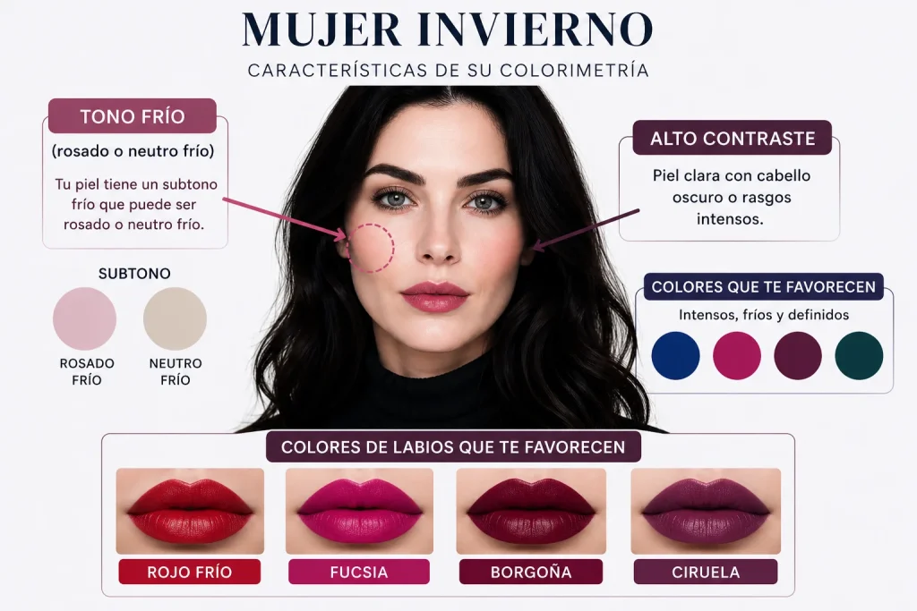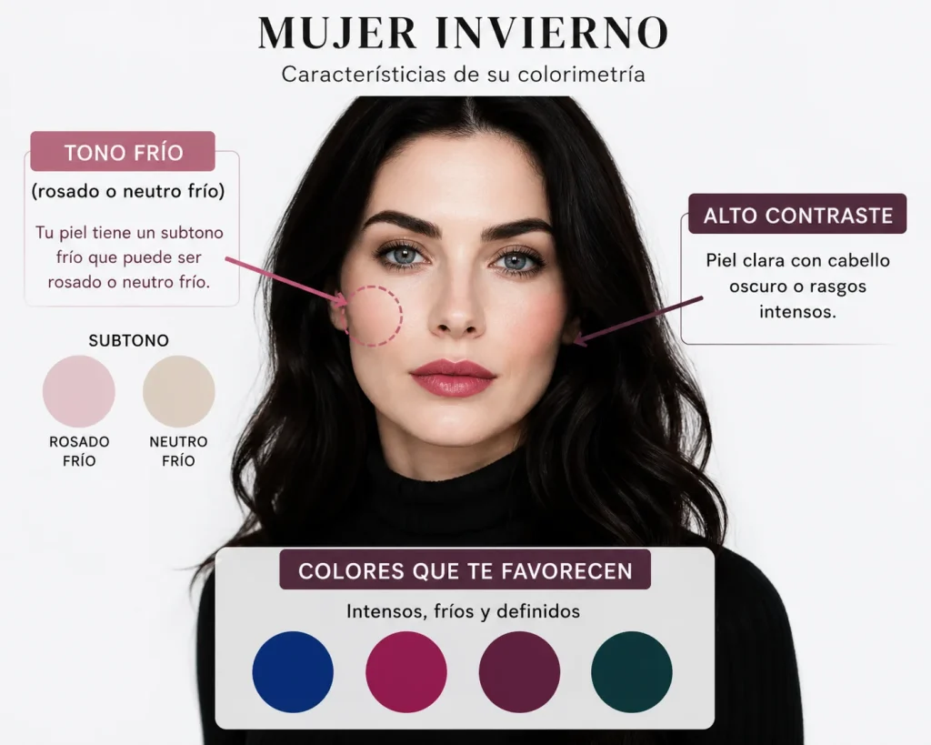 Si eres mujer Invierno, tu belleza tiene algo muy especial: contraste, intensidad y definición natural.