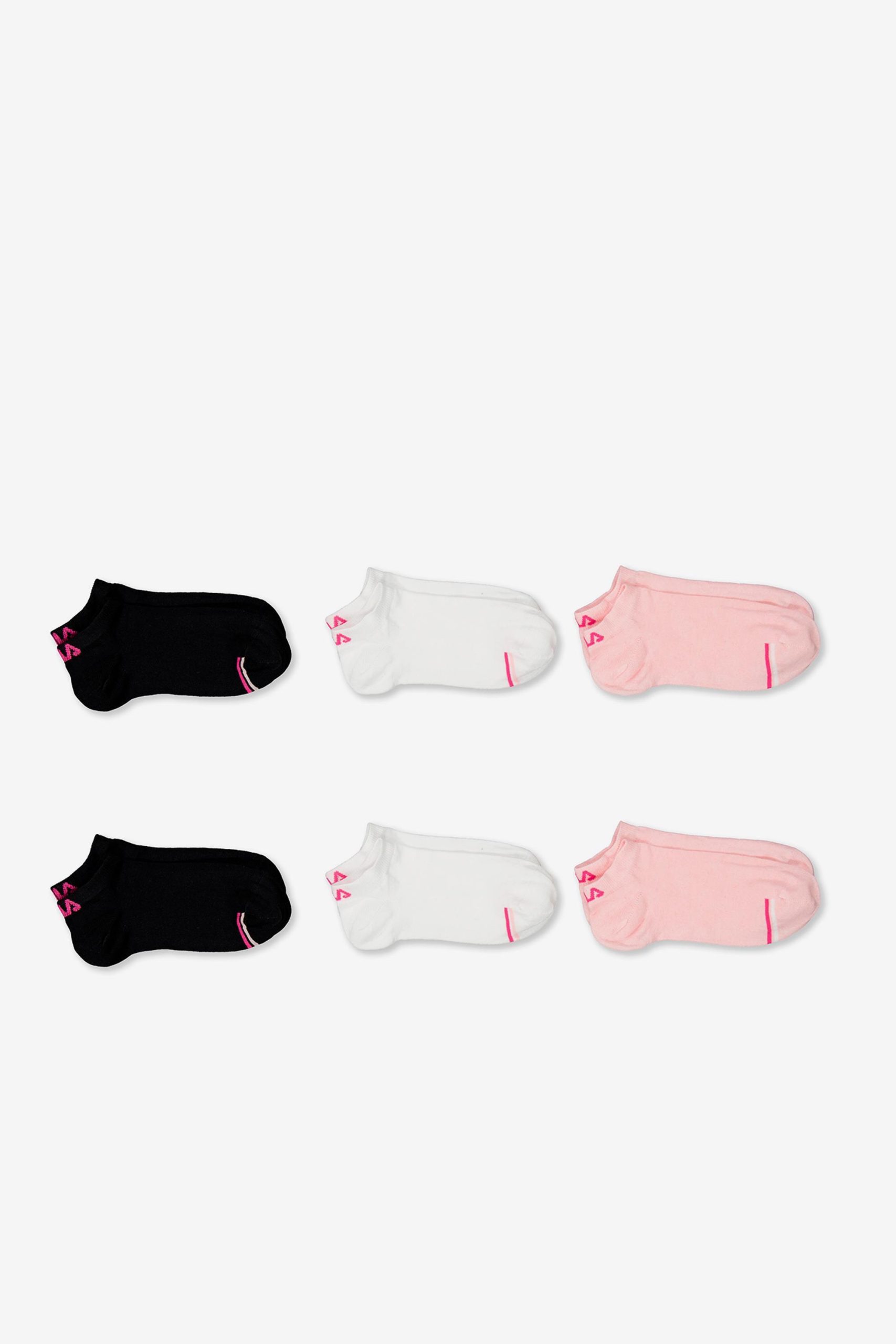 Calcetines Mujer. <p>Estos <b>calcetines de Fila</b> para mujer tienen un corte bajo y una banda elástica en el arco para un ajuste firme y cómodo. La tela ligera ofrece un tacto suave y confort adicional. Contiene 6 pares de calcetines.</p><b>Características:</b><ul><li>Corte bajo.</li><li>Tela ligera.</li><li>Banda elástica en el arco del calcetín.</li><li>Contiene 6 pares de calcetines.</li></ul><b>Instrucciones de lavado:</b><ul><li>Lavar en la lavadora con agua fría y en un ciclo delicado.</li><li>Usar solo blanqueador, sin cloro, si es necesario.</li><li>Secar en la secadora a una temperatura baja.</li></ul>