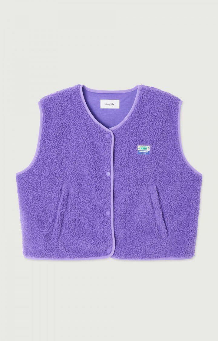 Chaqueta amplia sin mangas AMERICAN VINTAGE modelo HOKTOWN. Estilo folk para esta chaqueta sin mangas y tejido con textura de rizo, con bolsillos laterales.Detalles del producto • Bolero • Corte recto • Largo: corto • Cuello en picoComposición y cuidados • 100 % poliéster • 50% de poliéster reciclado como mínimo • Para su cuidado, te recomendamos seguir los consejos indicados en la etiqueta • POLIÉSTER RECICLADO. Utilizar poliéster reciclado significa conservar los recursos y reducir los residuos. Marca: AMERICAN VINTAGE. Material: Poliéster. Talla XS/S. Color Violeta