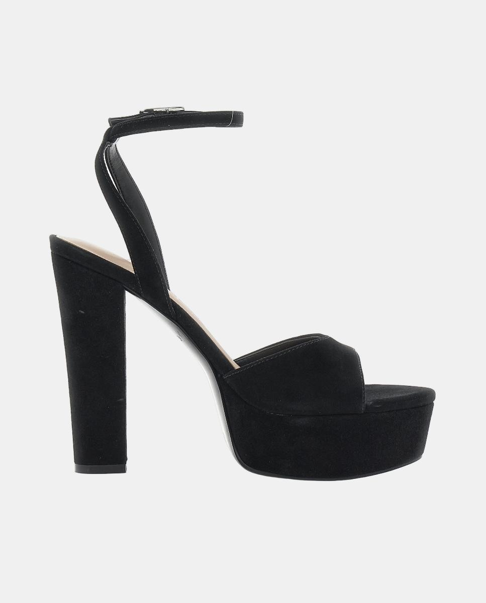 Sandalias lisas, caña y tacón alto, cierre con hebilla.