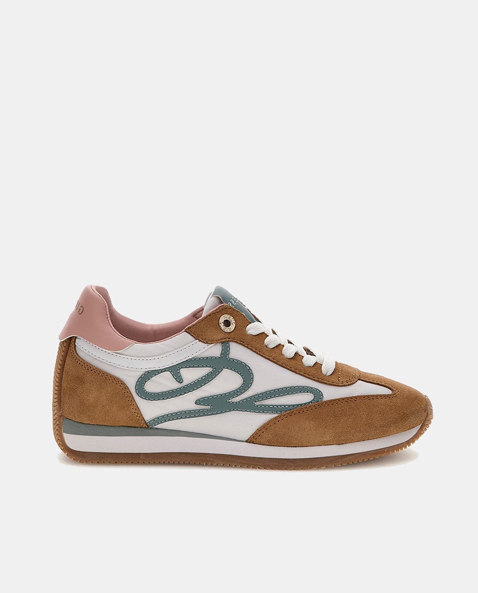 Zapatillas de mujer runner modelo skroll, en suede, punta redonda y estampado logotipo G