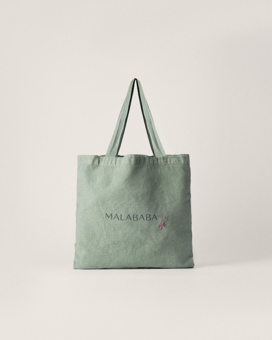 Bolso mediano tipo shopper, 100% algodón teñido con tintes ecológicos certificados, utilizando agua de la lluvia en el proceso. Con detalle de bordado hecho a mano en España. Medidas: 32 cm de alto x 36 cm de ancho Asa: 20cm Diseñado y fabricado íntegramente en España mediante procesos sostenibles.