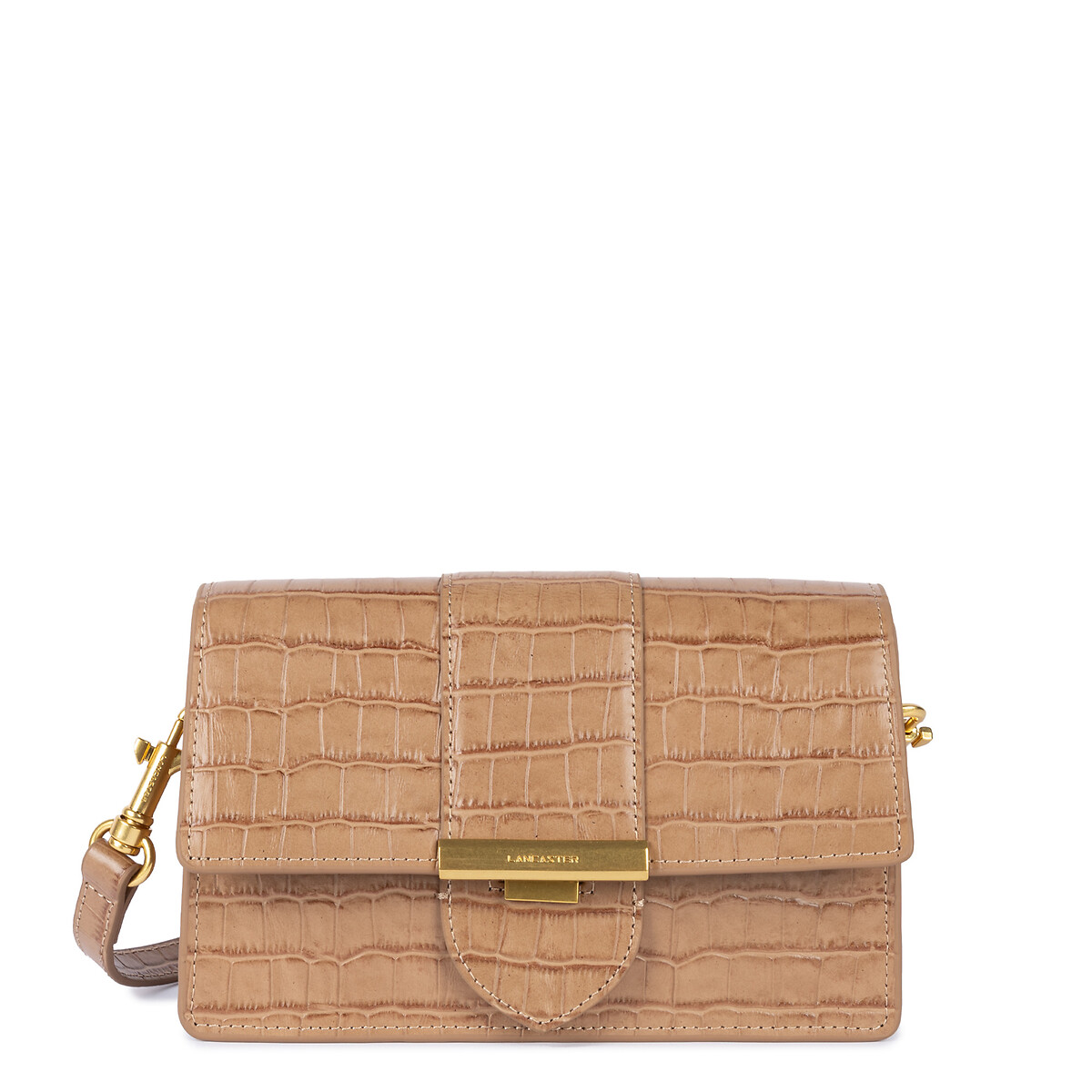 Bolso trotteur para mujer LANCASTER modelo EXOTIC ILY. Refinamiento y líneas elegantes para este bolso bandolera, con detalles en tono dorado y solapa estructurada. Formato minimalista que complementa una silueta elegante.Detalles del producto • Forma de bolso: bolso besace • Efecto tejido: granulado • Para llevar al hombro • Puede llevarse cruzado, en bandolera • Bandolera desmontable • Bandolera ajustable • Cierre principal: gancho • Dimensiones: 21 x 14 x 7 cmComposición y cuidados • 100% piel (vaqueta) • Para su cuidado, te recomendamos seguir los consejos indicados en la etiqueta Marca: LANCASTER. Material: Piel. Talla talla única. Color Beige