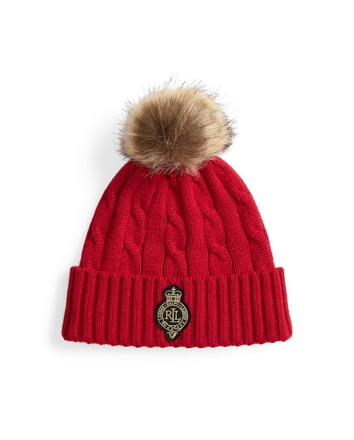 Este gorro, adornado con un pompón de pelo sintético en la corona, se caracteriza por el atemporal motivo en punto de ochos y un parche del escudo Lauren marca de la casa en la vuelta.