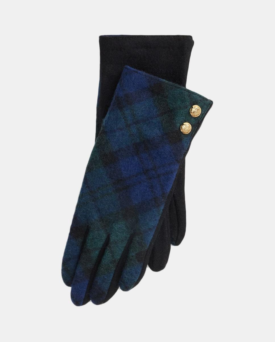 Guantes de mujer con estampado de cuadros y cierre de botones dorados, incluye dedos táctiles que permiten manejar la pantalla del móvil.