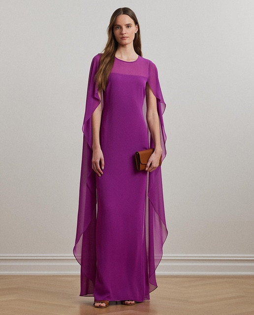 Este glamuroso vestido largo, que atraerá todas las miradas en su próximo evento, se ha diseñado con una capa semitransparente en cascada y una silueta de tubo que define la figura.